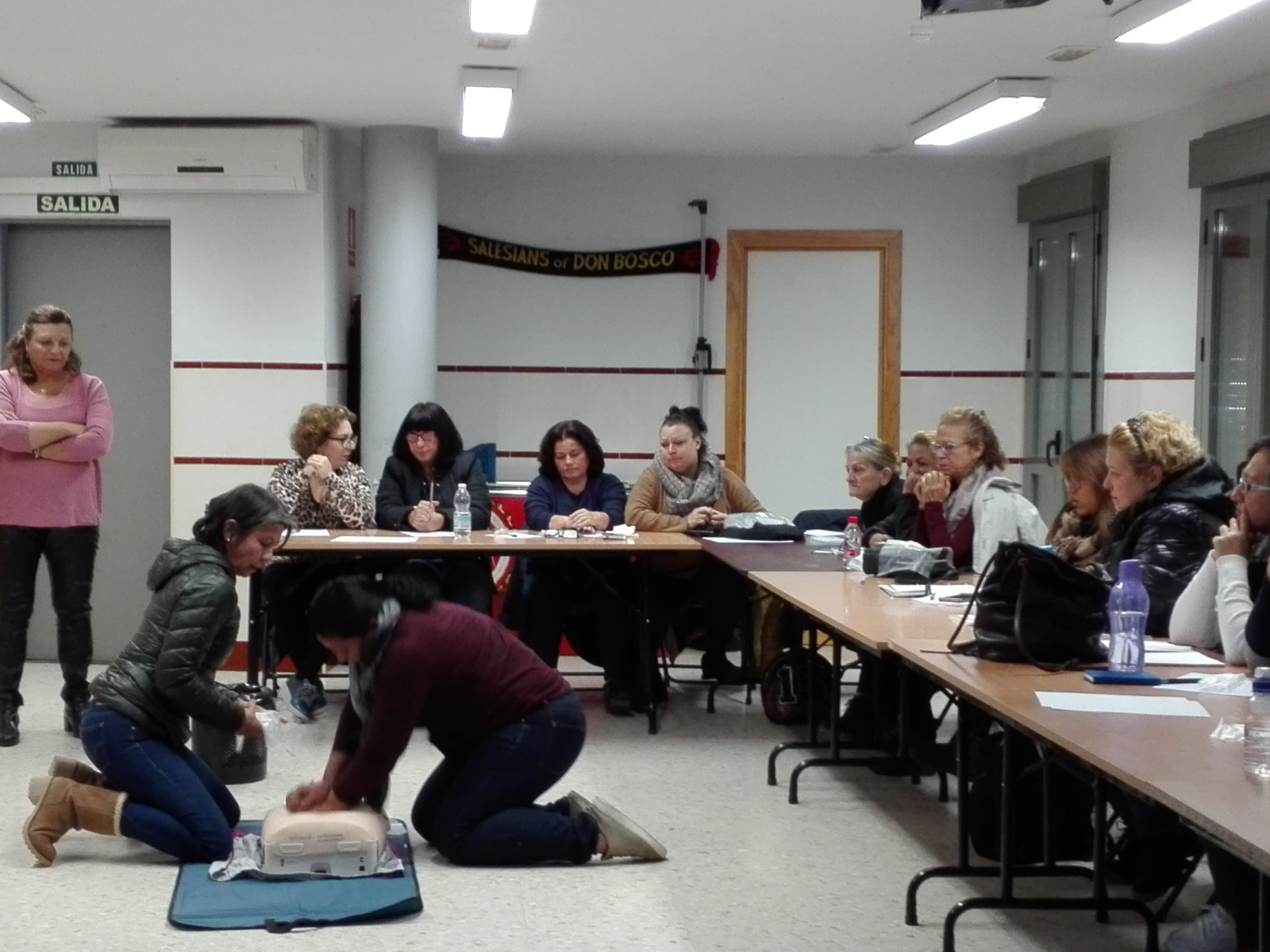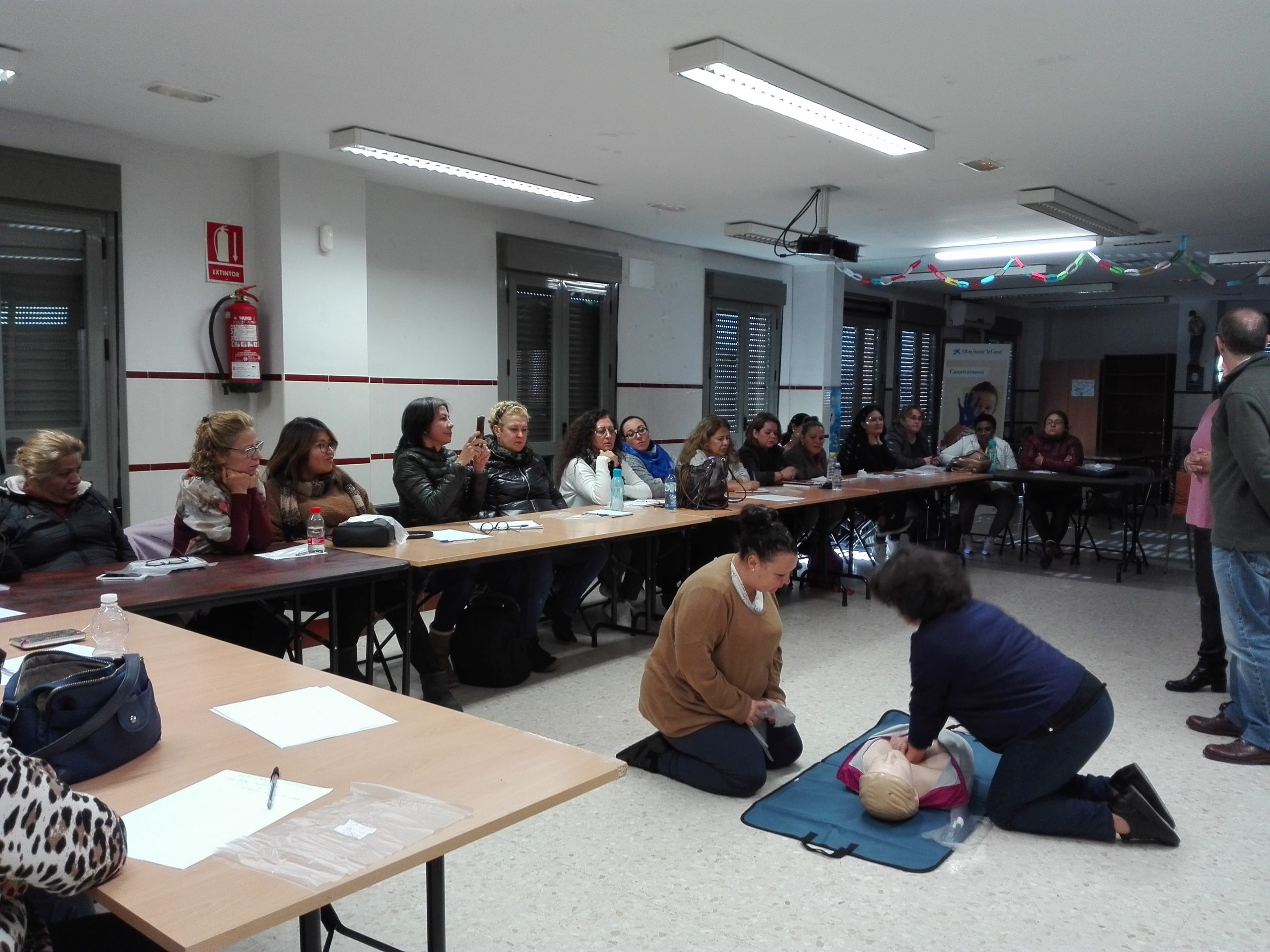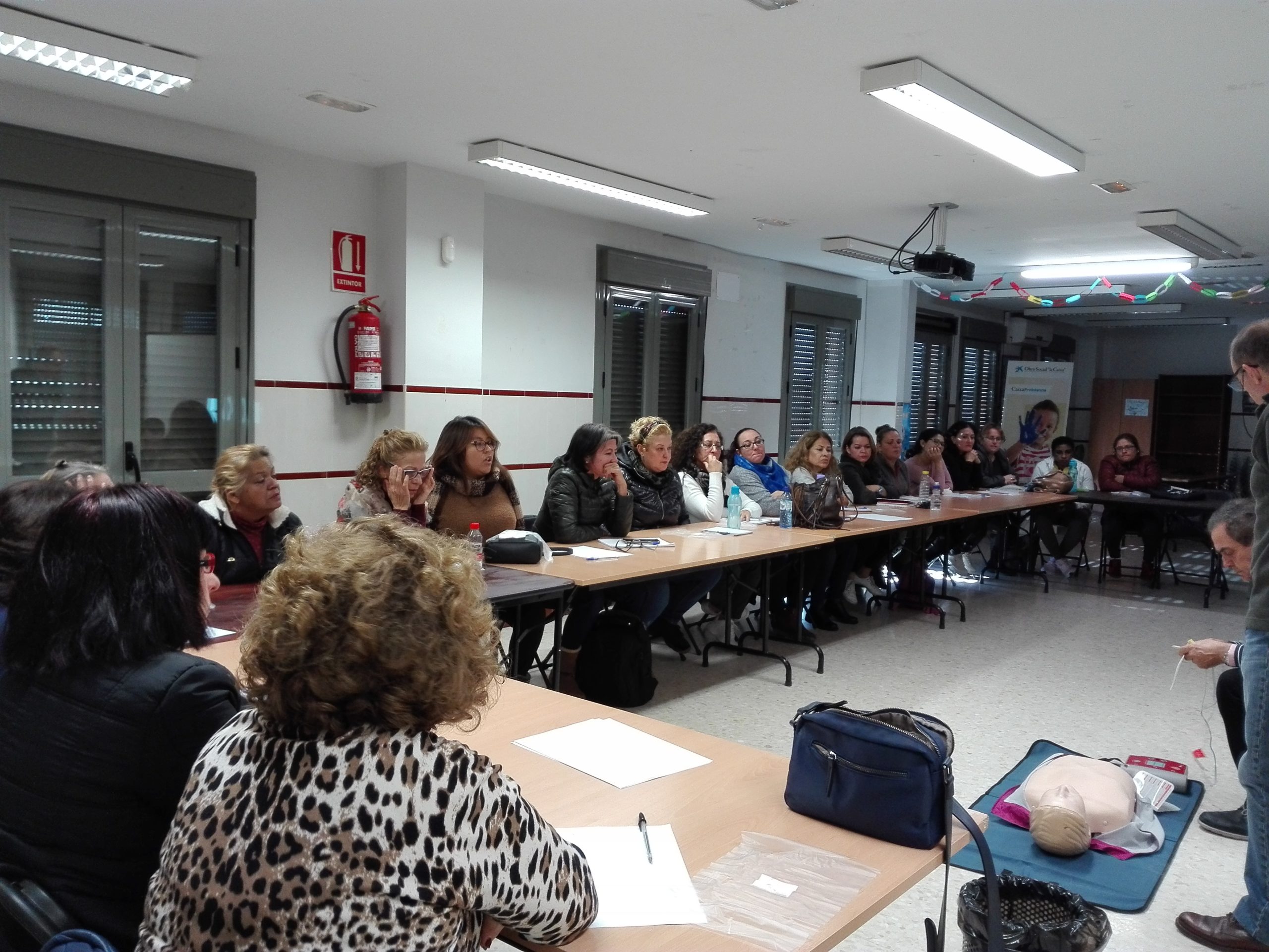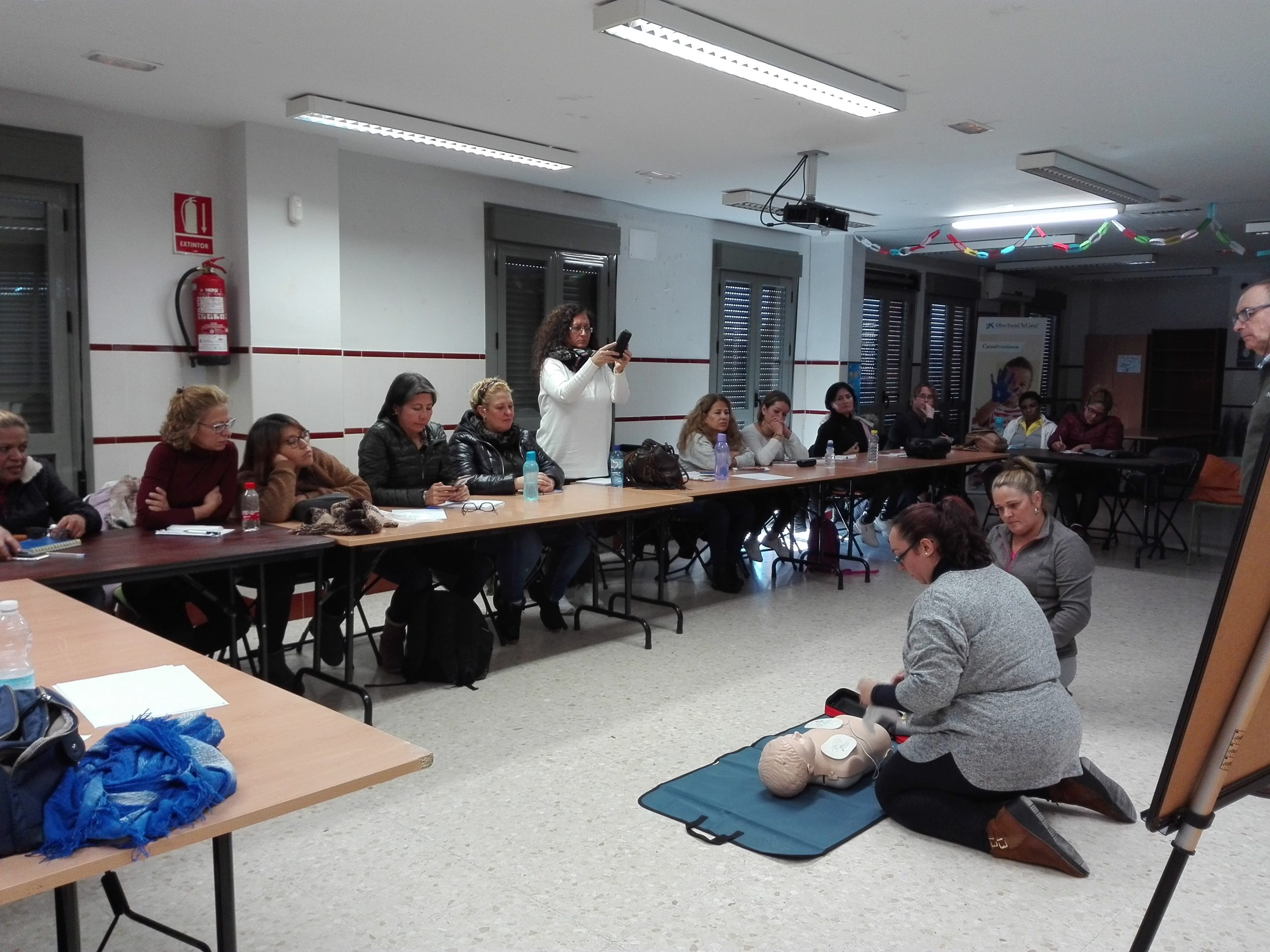El pasado lunes, nos visitaron técnicxs de la Unidad de Promoción de la Salud, distrito Cerro-Amate, del Ayuntamiento de Sevilla para impartir una formación de Primeros Auxilios y RCP a alumnas beneficiarias del Programa Incorpora de La Caixa